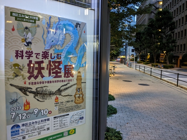 不思議な現象や存在を科学の視点で分析するという非常にユニークなもの。別の展示室があるわけではなく、1階みなと科学館の常設展示室内や入口のロビーにて展示されています。
