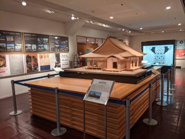 最後は考古資料や再現模型などが並ぶ、文化に関連する展示室。縄文土器や土偶のレプリカ、建築物の模型など、いかにも博物館といった雰囲気のお部屋です。