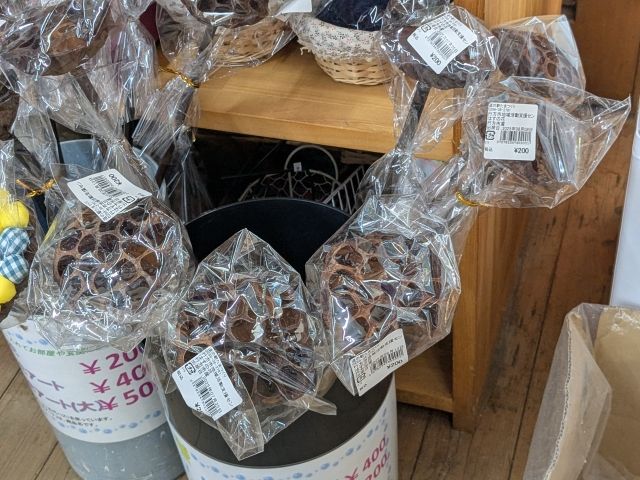 集合体恐怖症の方が悲鳴をあげそうな品物。いったい何に使うのかと思ったのですが、この穴に縮緬(ちりめん)をつめて、ちりめん細工を作るそう。Webで完成品を見てみたのですが、これまた集合体要素が強い作品でした。