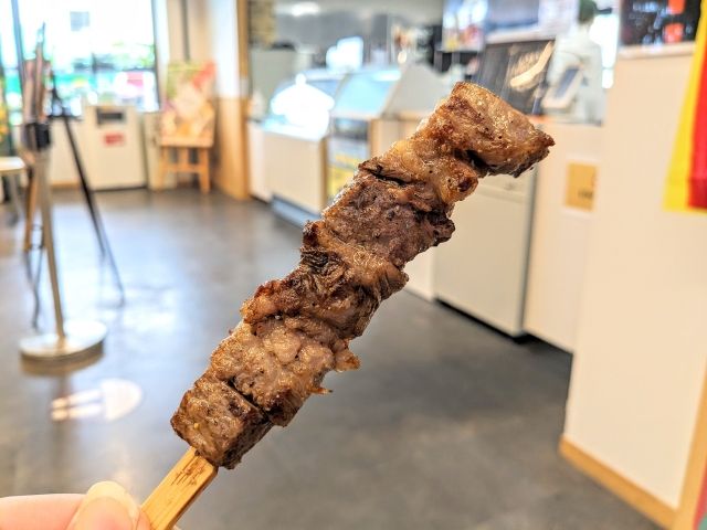 まだお腹ストレージに空き容量があるので、「FOOD PIT」にて米沢牛の牛串を。まさかの米沢牛追加です。