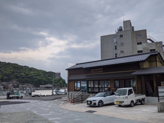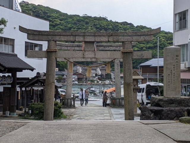 境港駅から美保関コミュニティバスで約10分のバス停《宇井渡船場》にて乗り換え、そこから約15分ほどのバス停《美保関》下車。