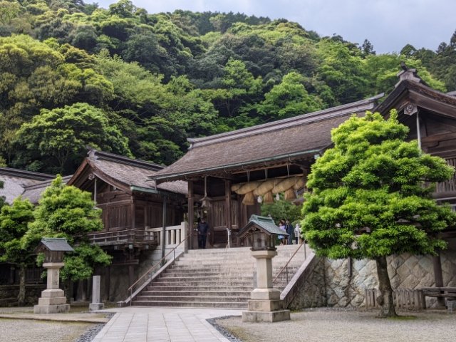 美保関の港町にたたずむ美保神社は、出雲大社との両参りでも知られる人気の神社。独特な造りの本殿や、音楽の神様としての側面など見どころは豊富。街並み散策や、美保関灯台と合わせてめぐりたい場所です。