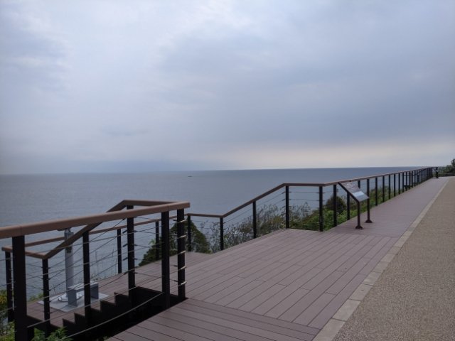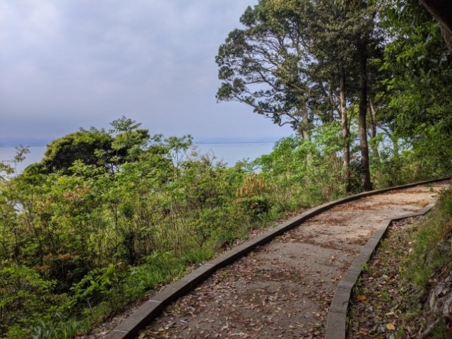 駐車場からはちょっとだけ歩きます。眺めの良い海辺の道なので、気持ち良いです。