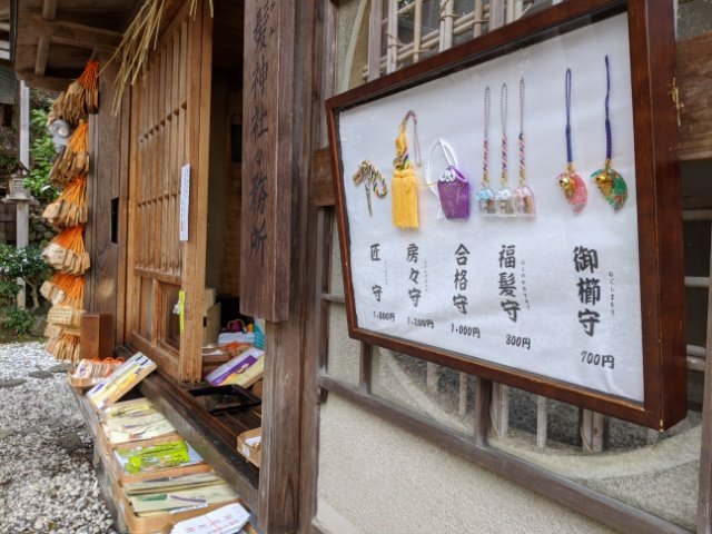 小さなクシの形をした御櫛守(おぐしまもり)、房のように糸が垂れている房々守(ふさふさまもり)など、髪にちなんだデザインとネーミングがかわいらしい。