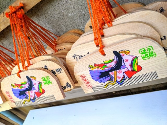 神社といえば、願い事を記して奉納する絵馬。神社ごとにデザインが異なっていますが、ここ御髪神社の絵馬は、櫛(くし)の形をしています。