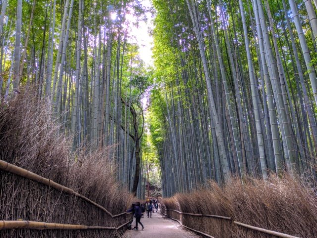 それぞれの駅から向かう場合、おそらく通り抜けるのが竹林の小径(こみち)。高くそびえる竹に囲まれた回廊は、嵐山を代表する景観です。