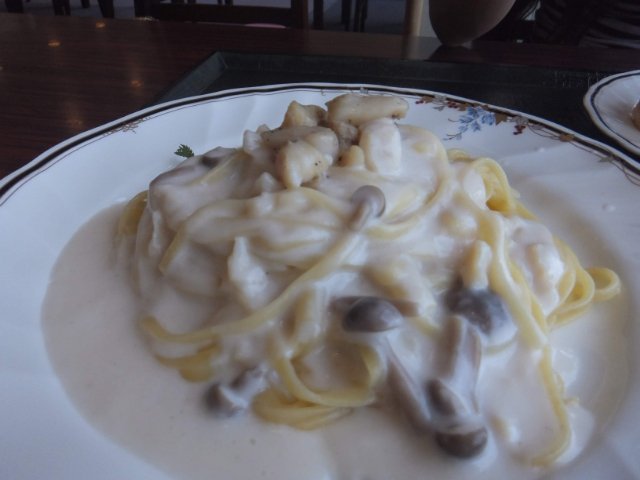 こちらは『貝柱クリームパスタ』。シーフード風味のクリームパスタは絶品です!