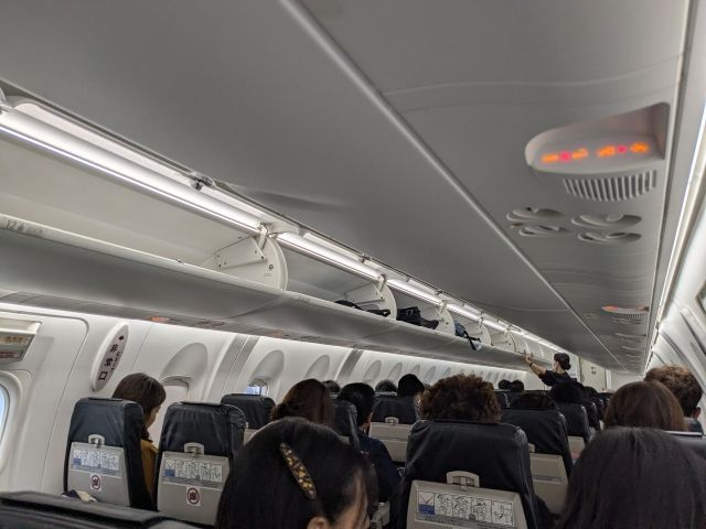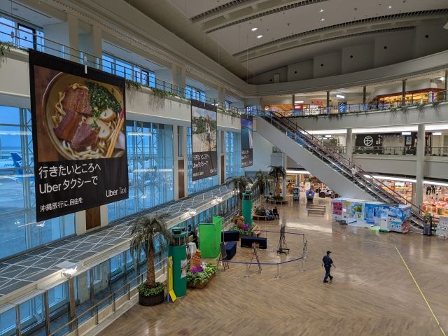 ということで空港近くのホテルグランビュー沖縄に泊まり、早朝6:50に那覇空港に到着。手荷物を預けたら保安検査場を抜けて搭乗口へ。昨日の羽田空港のときは13.7kgだった荷物が、なぜか14.9kgに増量していました。なぜ増えた。