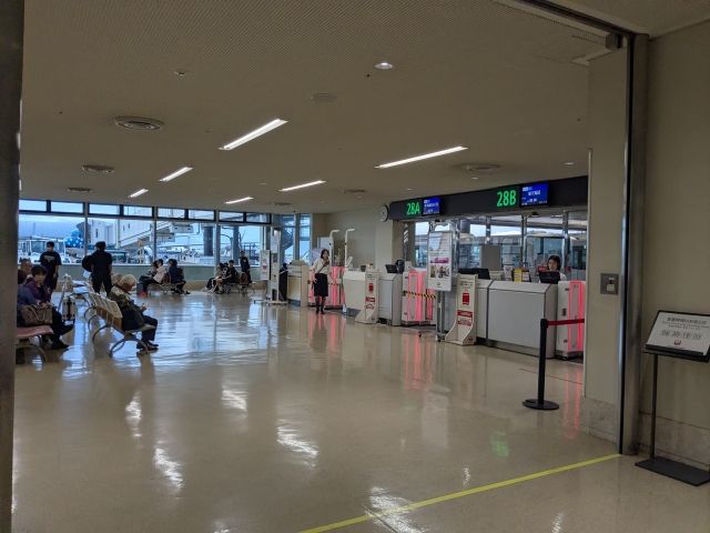 離島便であるRAC(琉球エアコミューター)の搭乗口は、通常の搭乗口のフロアから一つ下の28番。小さな待合室に3つのゲートがあります。ここは混雑も少なくて、静かな雰囲気。