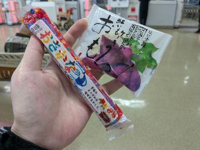 朝ごはんは売店で買った紅芋ケーキ「おもろ」と「雪塩ソーセージ」。超寝不足なので、軽めです。(※詳しくは前回の記事にて)