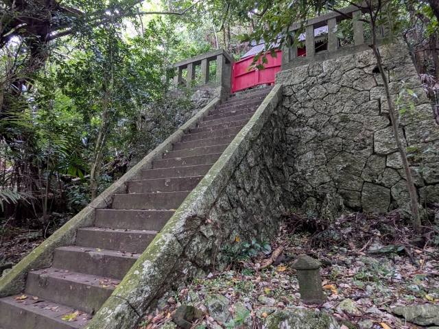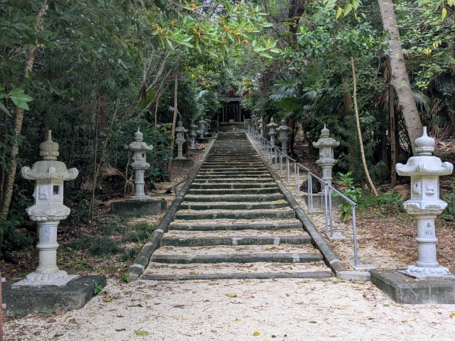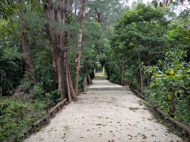 きれいに整備された参道。敷かれた白い石はサンゴのようにも見えます。