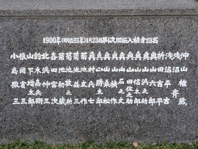 台座部分には第一次開拓入植者23名の名前も記されています。奥山さんが8人もいますね!