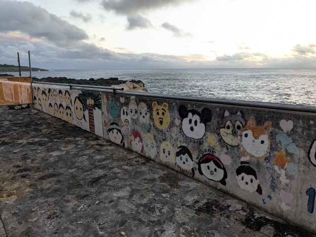 防波堤に描かれたアートは、島の学校の卒業記念作品のようです。いつでも見に行ける場所に記念作品が残るの、ちょっと羨ましいですね。