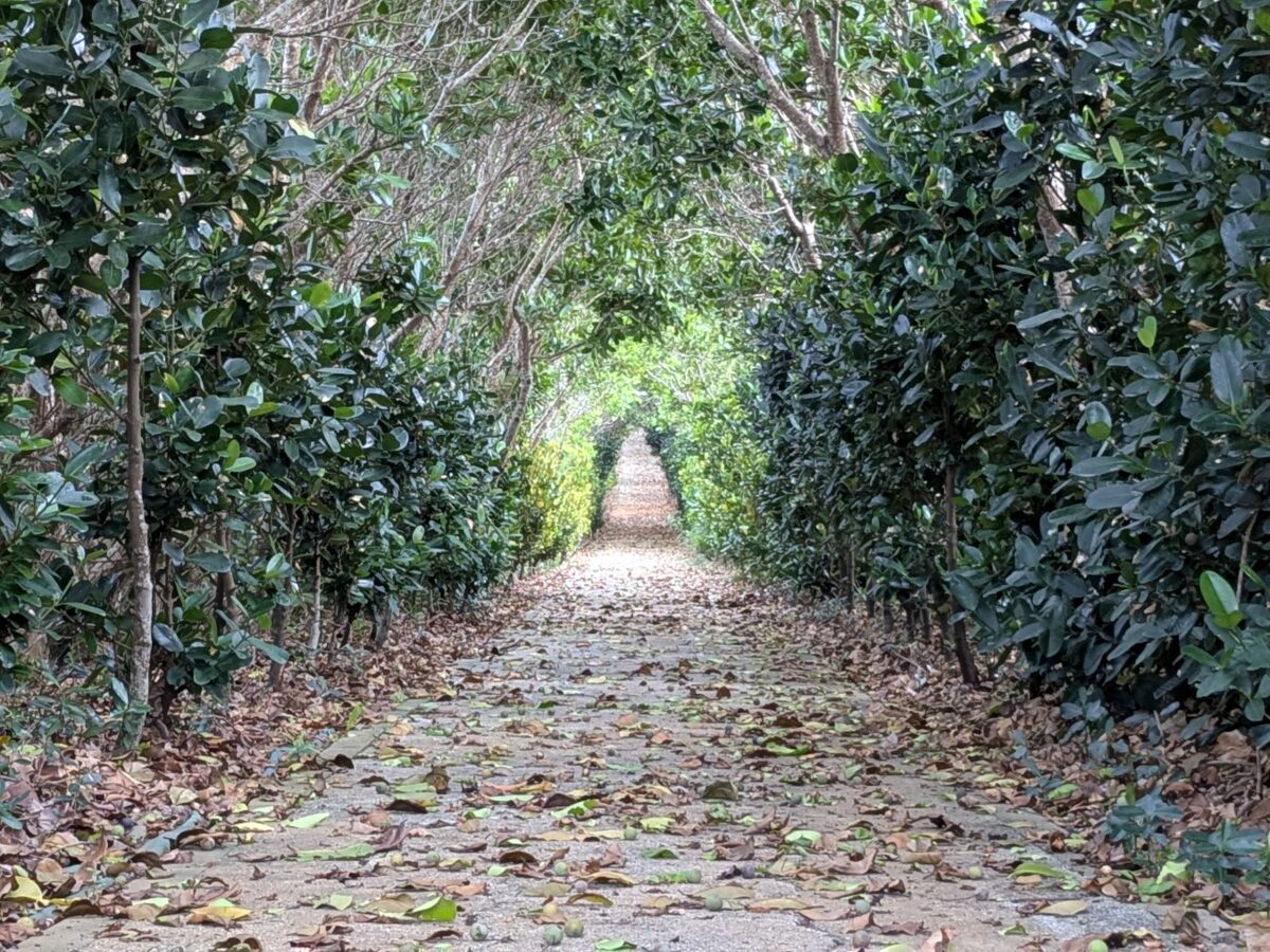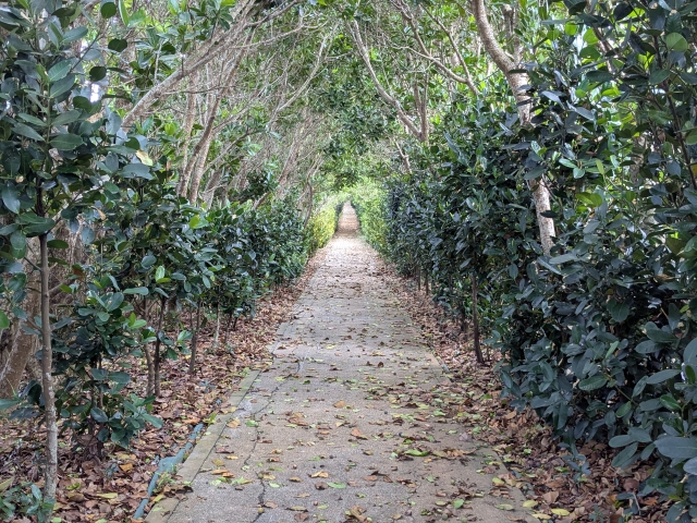 サトウキビ畑の真ん中に立ち並ぶ不自然なフクギ並木、ここは秋葉神社の参道。ここもやっぱりGoogleマップだとわかりにくいのですが、神社の入り口は西側から向かう形になってます。