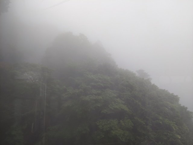 帰りも同じくロープウェイにて。しばらくは霧が続くのですが、高度が下がるにつれて徐々に晴れてきます。