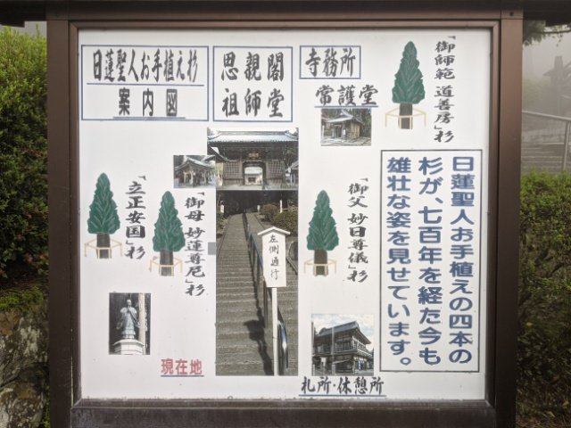 日蓮自らが植えたとされる「お手植えの杉」が4本植えられています。それぞれ母、父、恩師、立正安国の思いが込められているそう。