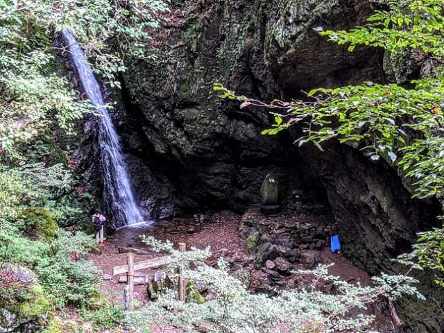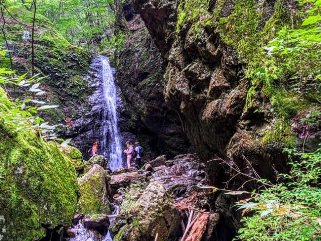 七代(ななよ)の滝は下流にある滝。そこに行くには、なかなかの急斜面を下って行く必要があります。ハイキングコースからは少し外れるルートとなっており、体力に自身が無い方はここをカットすると大幅に難易度が下がります。