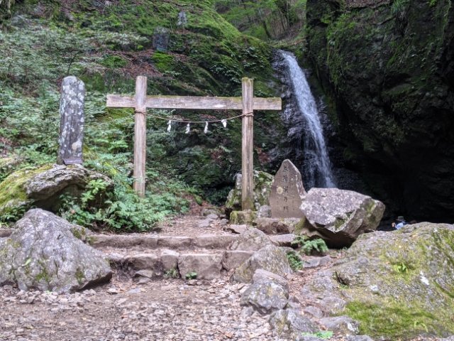 滝の前には禊乃門が設置されています。武蔵御嶽神社のみそぎが行われる場所で、滝に打たれる「滝行」も行われているそう。垂直落下する直瀑ではなく、岩肌をそうように流れるタイプの滝ですが、どのように滝行が行われるのか気になります。※試しに「綾広の滝 滝行」で画像検索してみたところ、インパクトある画像で画面が埋め尽くされました・・・!