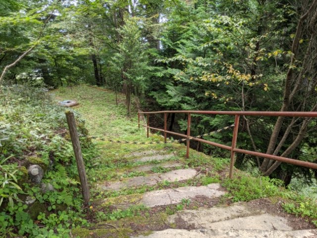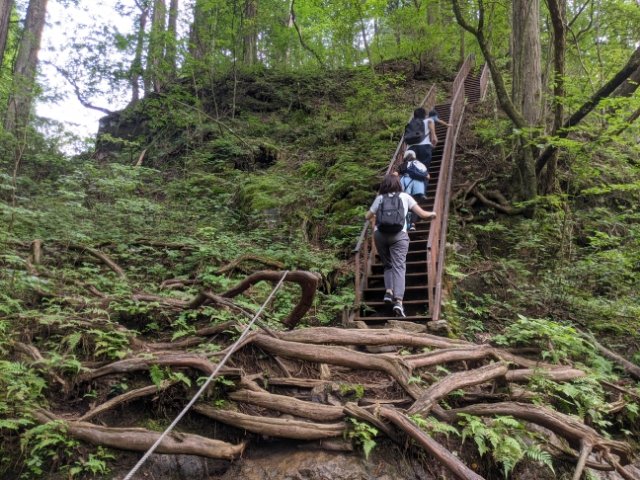 ここからコースに戻るにはハシゴのような鉄階段を登ります!なかなかハードですが、安定した足場と最短ルートはとってもありがたいです。七代の滝ルートの往復は40分ほどでした。