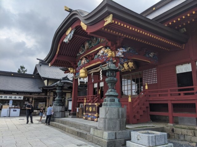 最初に見えてきたのは産安社。名前の通り安産、子育ての神として信仰されています。平安時代の末期、源頼朝によって創建されたと伝わる歴史のある神社です。
