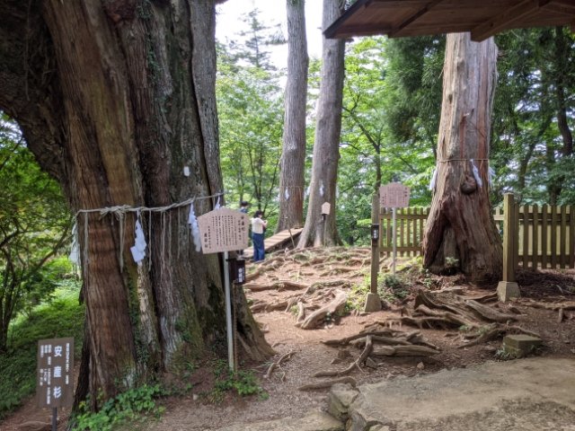 社殿の脇には立派な安産杉、コブのある子授檜(こさずけひのき)、2本そろった夫婦杉と、ご利益たっぷりな巨木が並んでいます。