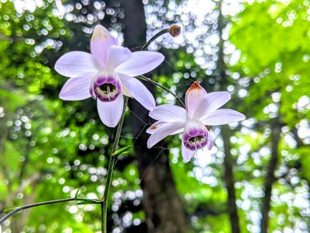 ケーブルカーの下車地、御岳山駅近くにはレンゲショウマの群生地があり、その数は約5万株。夏場に訪問すると、ムラサキに咲く可憐な花を見ることができます。