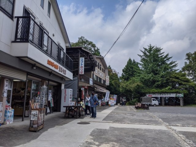 ケーブルカーの終点、御岳山駅、広場には食堂やお土産物屋さんがあってにぎやか。出発前に帰りのケーブルカーの時刻の確認をお忘れなく・・・!