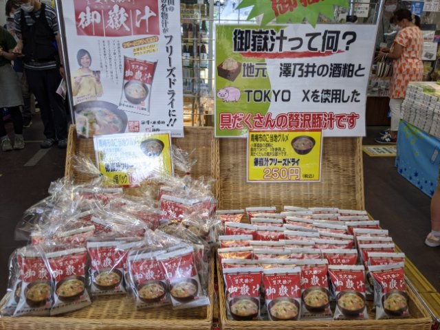 売店で売ってた御岳山名物の特製味噌汁・御嶽汁がとっても気になります。めっちゃ美味しそうなので、下りのときに買って帰ろう。
