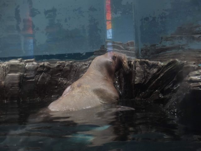 実はこの水族館、入館して最初に登場するのはセイウチ。まさかの開幕セイウチなのです。とてもよく動くサービス精神旺盛なセイウチで、訪れる人を楽しませてくれます。