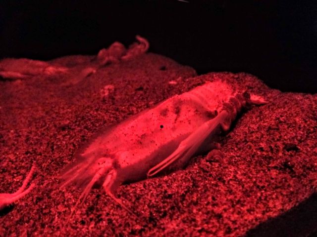 2本のハサミを折り畳んでいるセンジュエビは、まるでマニュピレーターを折りたたんだモビルアーマーみたいな姿をしております。眼は退化してしまっています。