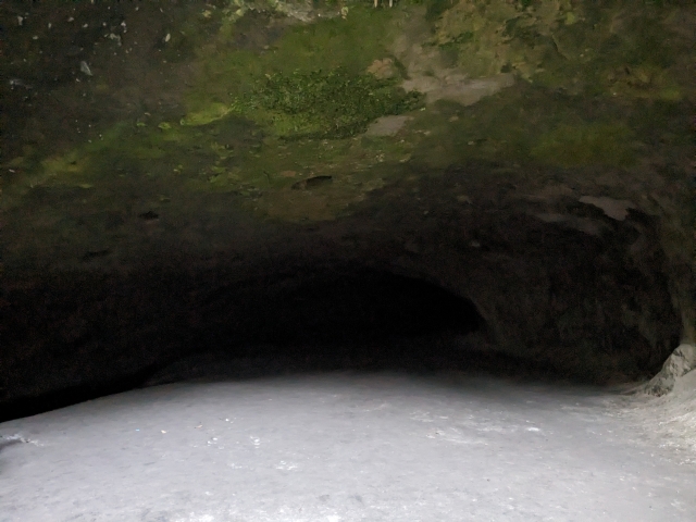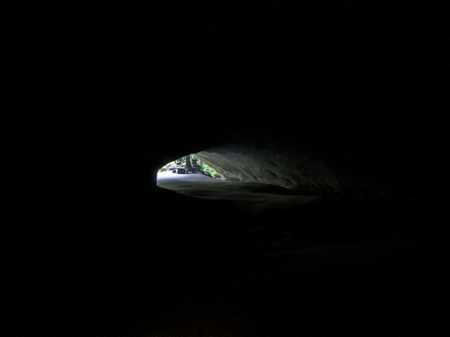 天然の洞窟であり、照明設備などは無いため洞内はびっくりするほど真っ暗。入口付近は光があるためなんとか見えますが、少し進むと足元すら見えない漆黒の闇が広がります。