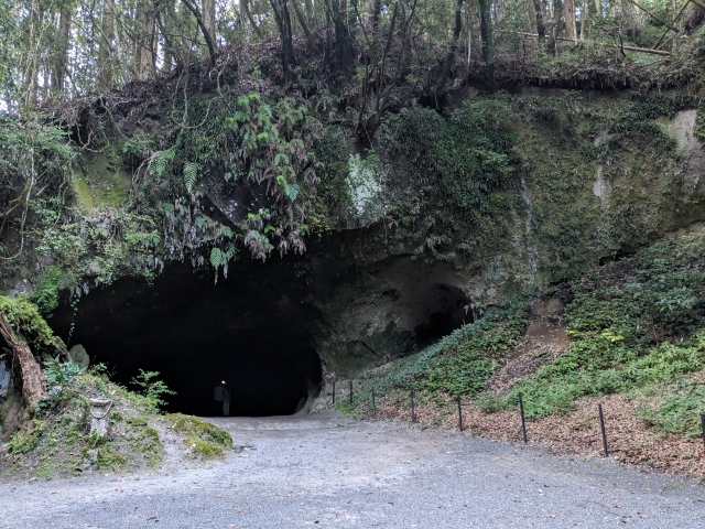 3万年前の噴火によって流出した火砕流の中にできた巨大な洞窟。自然に包まれた姿が美しく、神秘的な佇まいです。洞穴内部から見た外の景色が特に印象的で、近年ではパワースポットとしても人気を集めています。