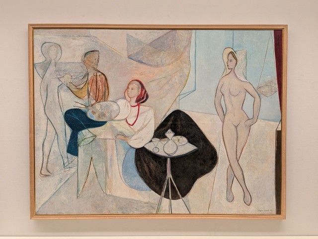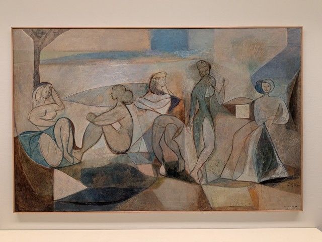 作風に変化が現れ、一気に抽象的になってきました。色彩も淡く、人物も簡略化された姿に変わっています。1949年とのことなので、渡米直前に仕上げた作品でしょうかね。