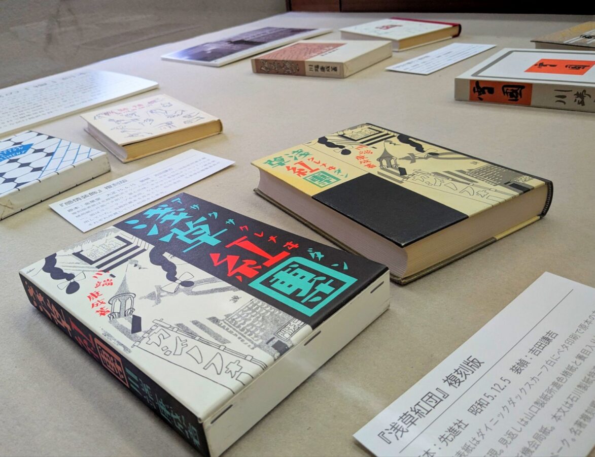 展示室の奥にずらりと並んでいたのは名著複刻全集。志賀直哉「暗夜行路」、芥川龍之介「羅生門」、川端康成「伊豆の踊子」など、日本史でもおなじみな有名な作品ばかり。