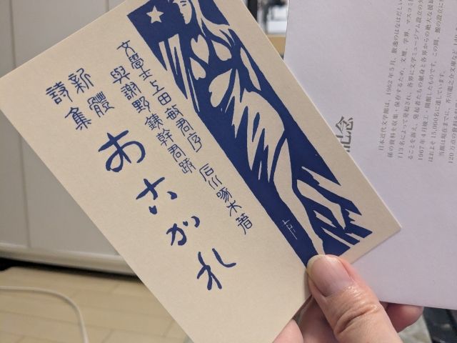 入館証がわりがこちらのポストカード!私は石川啄木の歌集「あこがれ」でしたが、きっと他にもパターンがありそうです。
