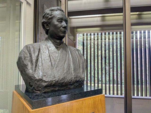 階段で進んだ2階には、高見順の像。「敗戦日記」などの作品で知られる昭和期を代表する小説家・評論家。財団法人日本近代文学館の初代理事長を務めた人物です。