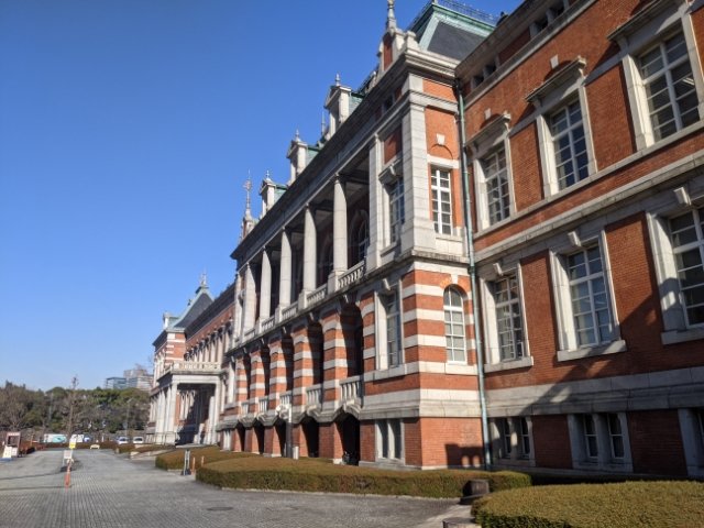 霞が関のビル群の中にとつぜん現れる重厚なレンガ建築。こちらは法務省の赤レンガ棟という、明治時代に造られた建造物。