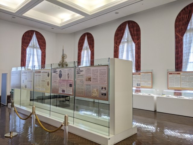 法務史料館の隣にはメッセージギャラリーを併設しており、司法の近代化と建築の近代化に関する史料を展示しています。先程の復元室に比べると、いかにもミュージアムといったわかりやすい展示内容。