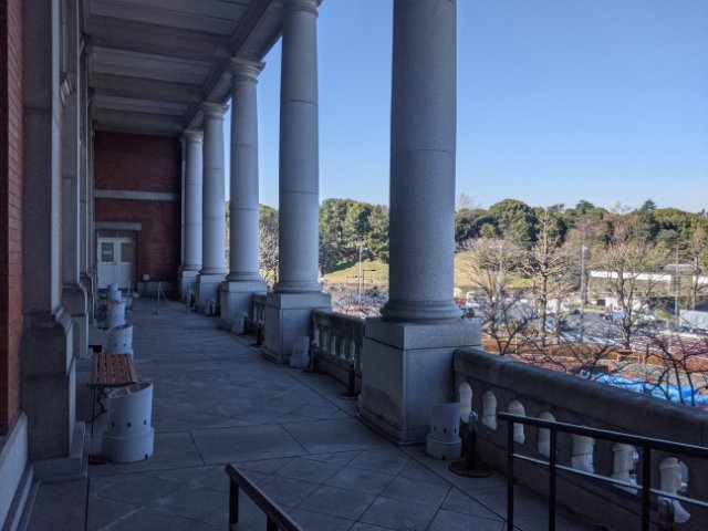 誰もいないテラスから皇居を眺めていると、まるで自分は違う世界にいるような気分。ちょっとしたヒミツの場所を見つけたような気持ちになりました。