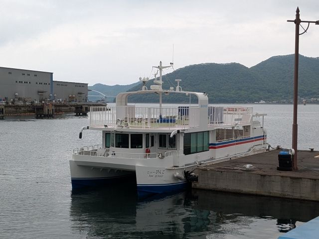 こちらが今回乗船する高速船「ニューびんご」。揺れに強いカタマラン船(双胴船)です!