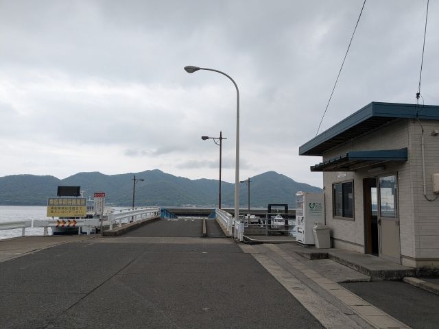 常石港にやってきました!自販機を備えた待合室があります。駐車場は港の目の前に無料のものが用意されてました。