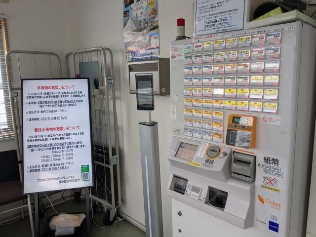 待合室は無人で、チケットは自動券売機タイプ。