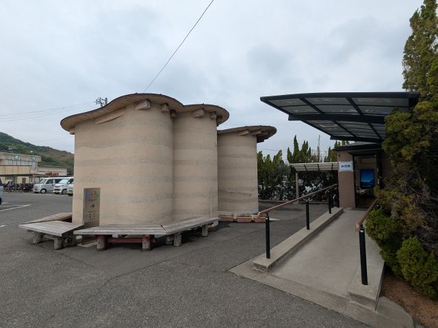 こちらが百島の福田港。小さな待合室とアーティスティックなトイレがあります。
