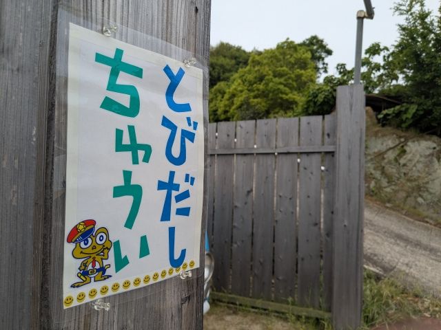 壁には「とびだしちゅうい」の貼り紙が。