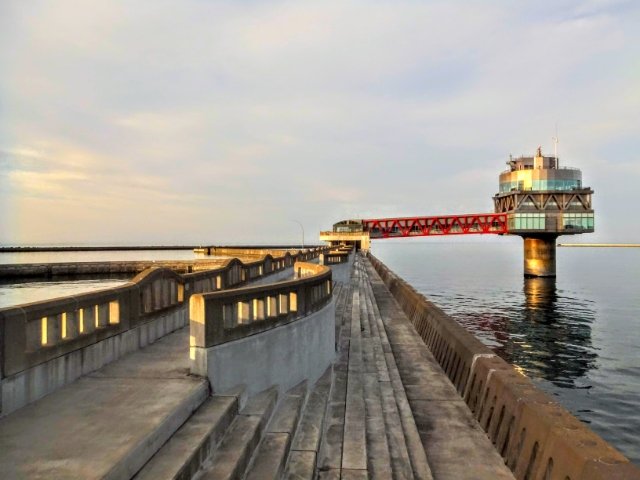 この防波堤はどこまで行けるのでしょうか。しばらく進んでいくと、海の中に立つ不思議な建築物が見えてきました。