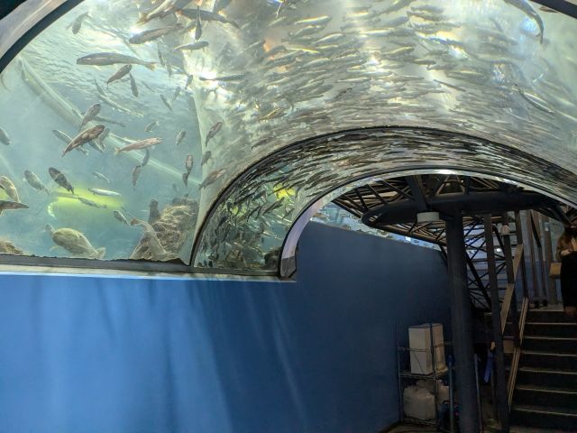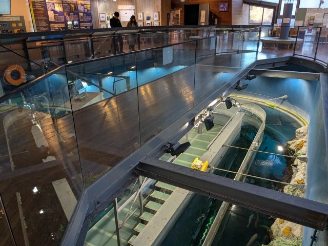 階段を降りると、この二重回遊水槽がトンネル水槽になっているポイントも。ここでもやはり二重構造がわかりやすくなっています。
