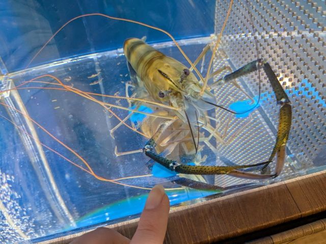 世界最大のテナガエビ、オニテナガエビ。体長15cmくらいと、ロブスタークラスのサイズ感。インド〜オーストラリアに暮らしており、トムヤムクンにも使用されるそうです。