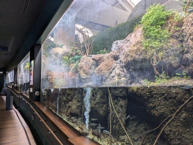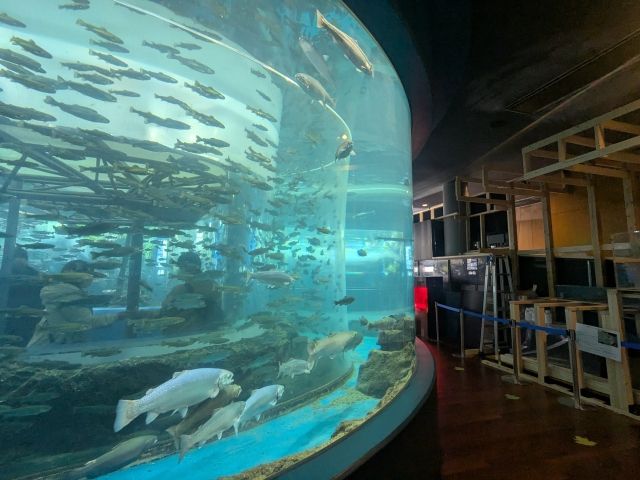 中流や上流を再現した水槽や、約3,000匹のサカナが泳ぐ二重回遊水槽など、河川の流れに暮らす淡水魚をたっぷりと観察することができる水族館。ローカル感あふれるユニークな展示も非常に面白く、小さな施設でありながらとっても見応えがあります。