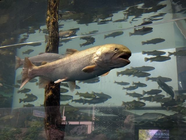 日本最大の淡水魚、イトウの姿も。イトウって肉食なので、小さなサカナは食べられてしまうのでは・・・?
