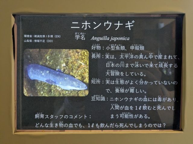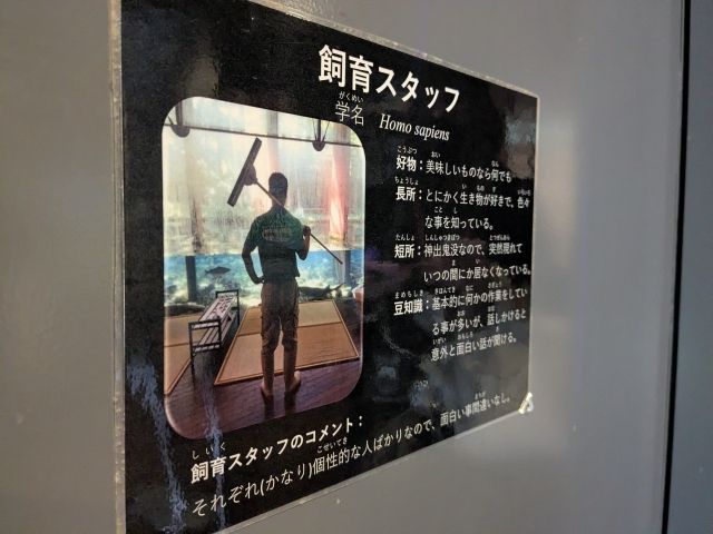 この水族館に来たら、ぜひ注目したいのがサカナの名前や詳細が記された「魚名板」。一見すると普通のプレートですが、最下部にある「飼育スタッフのコメント」がとっても秀逸!